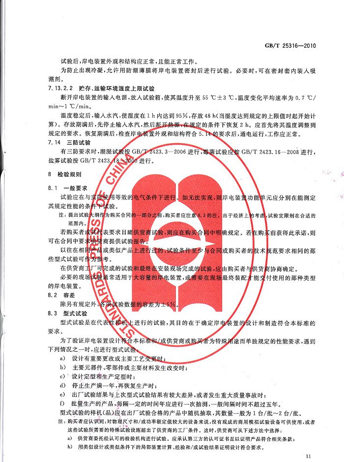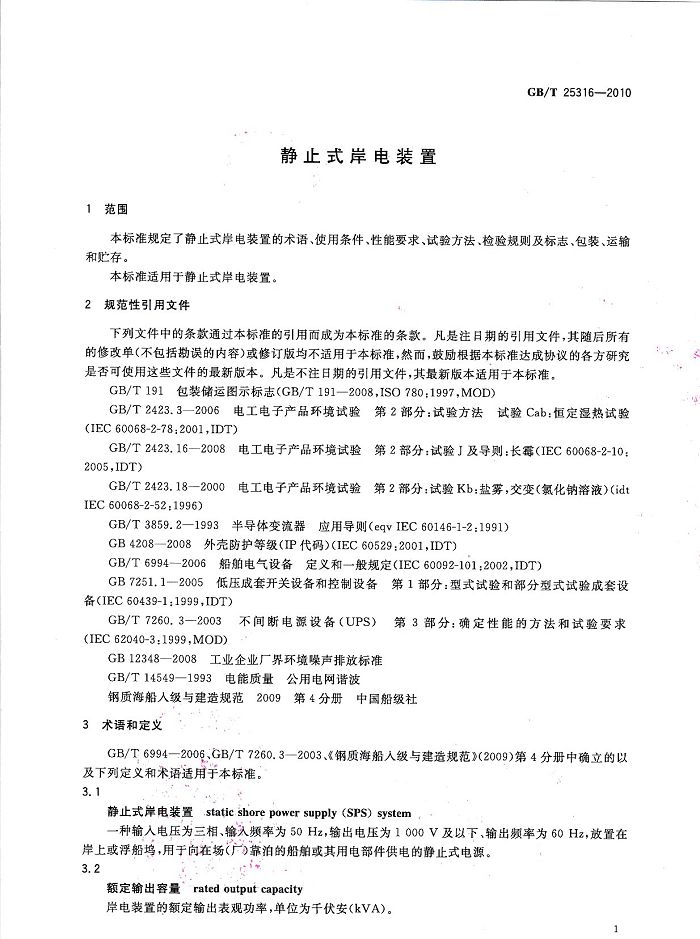 > 創(chuàng)統(tǒng)負責起草制訂GB/T25316《靜止式岸電裝置》